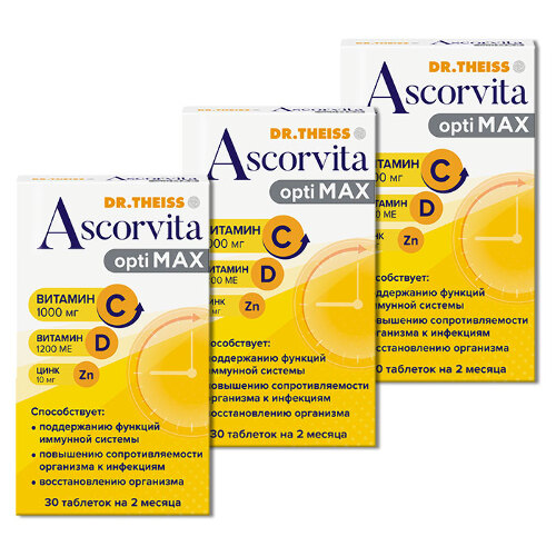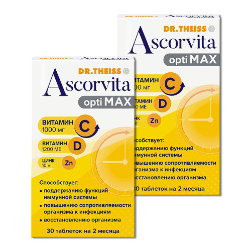 ДОКТОР ТАЙСС АСКОРВИТА ОПТИМАКС - Биологически активная добавка (БАД) к пище - является дополнительным источником витамина С, витамина D и цинка.