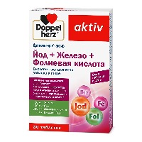 ДОППЕЛЬГЕРЦ АКТИВ ЖЕЛЕЗО+ЙОД+ФОЛИЕВАЯ КИСЛОТА - Биологически активная добавка (БАД) к пище - специальный комплекс разработан для восполнения недостатка йода и дефицита железа в организме. Компоненты комплекса способствуют поддержанию нормальной работы гормонов щитовидной железы, повышению защитных и адаптационных возможностей организма, снижению усталости.