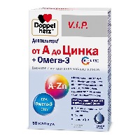 ДОППЕЛЬГЕРЦ VIP ОТ А ДО ЦИНКА+ОМЕГА-3 - Биологически активная добавка (БАД) к пище - сбалансированная формула из 23 важнейших нутриентов обогащает ежедневный рацион для поддержания работы головного мозга, иммунной и сердечно-сосудистой систем.