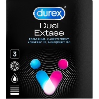 Презервативы Durex Dual Extase в силиконовой смазке с добавлением анестетика (бензокаина - 0,14 г) внутри презерватива. Смазка не разрушает сперматозоиды.