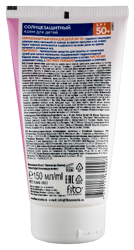 Крем хорошо впитывается и держится на коже даже во время купания и активных игр.