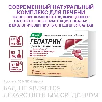 При производстве БАД «Гепатрин» используется сырье от ведущих мировых производителей.Содержит три важных компонента для: восстановления, очищения и защиты печени.Гепатрин содержит сразу три активных компонента для синергического тройного действия на печень::лецитин, экстракт артишока, экстракт расторопши.Способствует:-естественному обновлению клеток печени,-мягкому очищению желчных протоков,-защите клеток печени от неблагоприятных факторов.