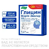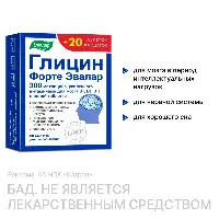ГЛИЦИН ФОРТЕ ЭВАЛАР - Биологически активная добавка (БАД) к пище - В каждой таблетке высокое содержание глицина (300 мг), усиленного витаминами для мозга В1, В6, В12.