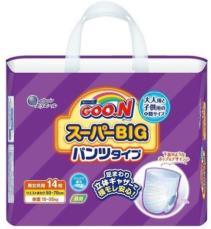 Трусики Goon (BIG) изготовлены специально для тех, кому не подошли подгузники стандартных размеров.