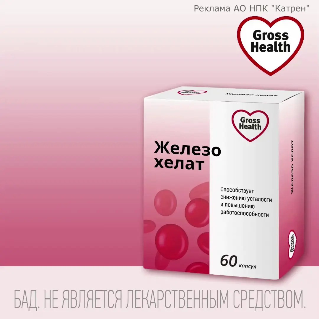 Комплекс Гроссхелс Железо хелат содержит биодоступное легкоусвояемое железо из аминокислотного хелатного комплекса, усиленное коэнзимными формами витаминов для лучшего усвоения, способствует поддержанию в норме уровня ферритина и гемоглобина, снижению риска развития анемии, снижению усталости, повышению работоспособности, хорошей переносимости без побочных эффектов со стороны желудочно-кишечного тракта.