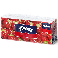 Мягкие платочки Клинекс с приятным запахом сладкой клубники напомнят вам о лете и помогут бороться со стрессами и плохим настроением - мягкая нежная бумага.