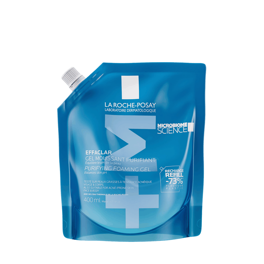 LA ROCHE-POSAY EFFACLAR GEL ОЧИЩАЮЩИЙ ПЕНЯЩИЙСЯ ГЕЛЬ ДЛЯ ЖИРНОЙ ЧУВСТВИТЕЛЬНОЙ КОЖИ 400МЛ/СМЕННЫЙ. Внешний вид: Гелевая текстура прозрачного цвета. Подходит даже для чувствительной кожи. Рефил или сменный блок - это экологичная упаковка. Содержит на 73% меньше пластика, чем классический флакон Effaclar с помпой 400 мл. Очищающий пенящийся гель La Roche-Posay Effaclar для жирной чувствительной кожи лица и тела бережно очищает кожу и поры благодаря комплексу компонентов, мягко воздействующих на жирную чувствительную кожу. Эффективно удаляет загрязнения и кожное сало, оставляя кожу чистой и свежей. Благодаря специальной технологии поддерживает рН кожи.