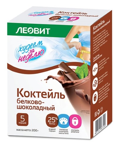 515.00₽Действие коктейля: Коктейль Леовит (40,0 гр-один пакетик) обеспечивает организм 10 граммами высококачественного белка, обеспечивает длительное чувство сытости, благоприятно воздействует на процессы переваривания и усвоения пищи, способствует скорейшему выведению из организма продуктов обмена веществ. Компоненты коктейля Леовит помогают организму сжигать жиры и способствуют нормализации веса. Назначение коктейля: Белково-шоколадный коктейль незаменим для тех, кто ведет активный активный образ жизни и много и с удовольствием занимается спортом. В процессе интенсивных тренировок тратится много сил и энергии, потребность в энергии и в белке для таких людей увеличивается. Белково-шоколадный коктейль помогает быстро восстановить их. За счет белка, представленного в хорошо усваиваемой форме, коктейль способствует скорейшему восстановлению работоспособности после интенсивных тренировок. Белково-шоколадный коктейль могут включать в свой рацион люди, страдающие заболеваниями сахарным диабетом, поскольку вместо сахара он содержи фруктозу. Коктейль полезен, поскольку его натуральные пищевые волокна способствуют нормальной работе желудочно-кишечного тракта. Белково-шоколадный коктейль Худеем за неделю - идеальное решение для всех, кто: