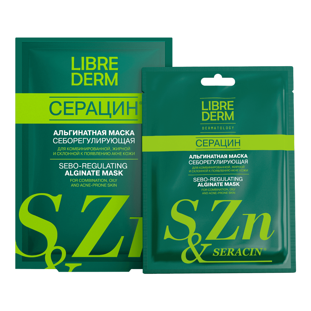 ЛИБРИДЕРМ СЕРАЦИН АЛЬГИНАТНАЯ СЕБОРЕГУЛИРУЮЩАЯ МАСКА ДЛЯ ПРОБЛЕМНОЙ КОЖИ - устранение жирного блеска и несовершенств. Улучшение тона и тонуса кожи. Внешний вид и свойства: плотная кремовая текстура маски быстро пластифицируется на лице. Ощущение свежей и обновленной кожи после применения Возраст: 14+ лет