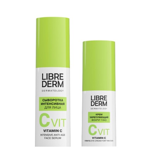 Librederm Витамин С укрепляющий крем для тонкой кожи вокруг глаз Активные ингредиенты -Витамин С в липидной форме - блокирует раздражения, уменьшает покраснения, осветляет кожу при гиперпигментации, стимулирует синтез коллагена и эластина -Бетаин- уменьшает раздражение кожи, смягчает ее и разглаживает, ускоряет заживление кожи -Экстракт розмарина- стимулирует регенерацию клеток; Отбеливает кожу и борется с пигментацией Эффективность Увлажняет кожу. Коллагеновый каркас укрепляется, глубина морщин уменьшается, кожа разглаживается, темные круги под глазами осветляются.