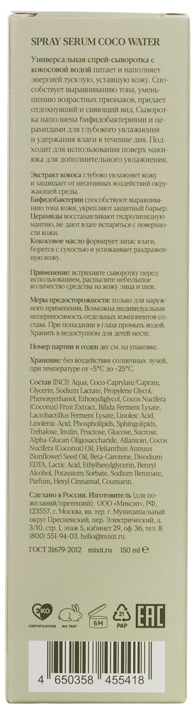 MIXIT СПРЕЙ-СЫВОРОТКА С КОКОСОВОЙ ВОДОЙ УНИВЕРСАЛЬНАЯ - Тип кожи: Для всех типов кожи