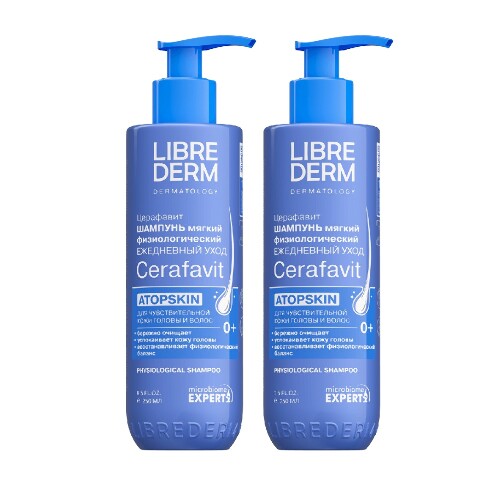 Librederm церафавит шампунь для младенцев детей и взрослых с церамидами и пребиотиком мягкий физиологический 250 мл 2 шт.