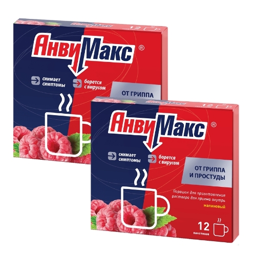 Набор 2 уп. АНВИМАКС N12 ПАК ПОР Д/Р-РА Д/ПРИЕМА ВНУТРЬ /МАЛИНА со скидкой