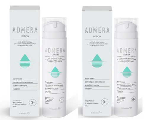 Адмера лосьон для ухода за сухой и чувствительной кожей лица и тела для младенцев с 0+ детей и взрослых 200 мл 2 шт.