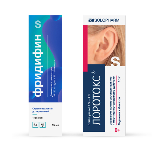 Местное симптоматическое лечение и обезболивание у детей с рождения и взрослых при среднем отите с неповрежденной барабанной перепонкой, в том числе при: