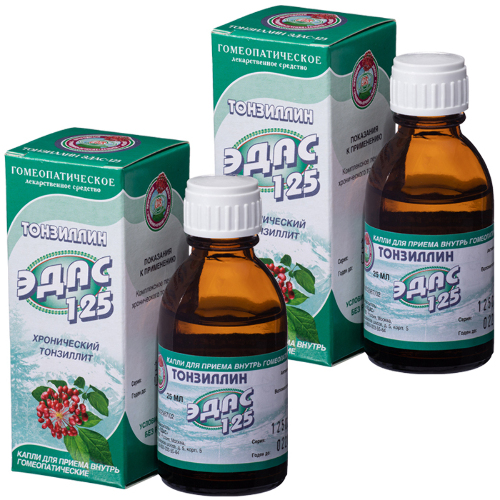 Эдас-125 тонзиллин флакон капли для приема внутрь гомеопатические 25 мл 2 шт.