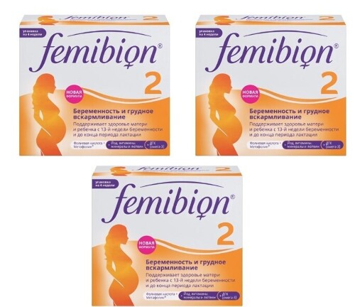 Фемибион 2 поддерживает Вас и Вашего ребенка,* начиная с 13-й недели беременности и до конца периода лактации в качестве биологичеки активной добавки к пище