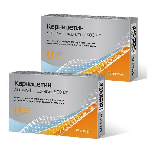 Ацетил-L-карнитин (АЛК) - природное биологически активное вещество. АЛК присутствует в различных органах и тканях, в том числе ЦНС, помогает поддерживать метаболизм и ментальную функцию. Фармакологическое и биологическое действие ацетил-L-карнитина обусловлено метаболическими эффектами L-карнитина и ацетильной группы, входящих в его состав. L-карнитин - природное вещество, незаменимое для организма для получения энергии из жиров. При стрессе, гипоксии, повышенных нагрузках организм задействует жиры в качестве основного источника для производства энергии. Главные «энергетические станции» клеток - митохондрии. Здесь в ходе сложных биологических взаимодействий образуется АТФ - универсальный источник энергии для жизнедеятельности организма. Жиры не могут самостоятельно проникнуть в митохондрию. Им требуется транспорт. Этим транспортом является L-карнитин. По количеству АТФ окисление жиров в 2 раза превосходит процесс окисления глюкозы и дает до 75% дополнительной энергии1. Из клетки L-карнитин выводит органические кислоты, ксенобиотики и свободные радикалы2. С возрастом, особенно у людей с хронической патологией, собственный синтез карнитина снижается, а пищевой рацион может удовлетворять потребность лишь наполовину.2 Поэтому у пожилых людей, у пациентов с хроническими заболеваниями, у тех, кто перенес инфекцию, у людей с ослабленным иммунитетом высок риск развития карнитиновой недостаточности, что приводит к митохондриальной дисфункции и снижению функциональных резервов организма. За счет полноценного энергетического обеспечения организма при меньшем потреблении кислорода тканями АЛК защищает ткани мозга от ишемии, проявляет нейропротекторные свойства, а также защищает клетки мозга от нейротоксических эффектов. АЛК оказывает нейротрофическое действие, улучшает процессы регенерации, ускоряет регенерацию нервных клеток при травматических и эндокринных повреждениях периферических нервов при диабете. Результаты экспериментальных исследований показали, что АЛК обладает антиамнестической активностью, улучшает процессы обучения, показатели не ассоциативной памяти, оказывает позитивный эффект на мнестические функции, не вызывая при этом седативного действия. Заметный эффект АЛК оказывает на замедление процессов старения за счет усиления транспорта жирных кислот в митохондрии и поддержания их работы на уровне молодого организма. Биологически активные добавки и лекарственные препараты на основе АЛК широко применяются в мировой практике: для повышения умственной работоспособности, улучшения концентрации внимания и памяти- при высоких умственных нагрузках, стрессах, в условиях многозадачности, при большом количестве информации, после заболеваний3. Средства на основе АЛК незаменимы для профилактики возрастных изменений когнитивных (познавательных) функций у людей старше 60 лет: нарушения способности к запоминанию нового материала, затруднения способности воспроизведения ранее усвоенной информации, нарушения способности к суждениям, мышлению (планированию, организации) и переработки информации.3