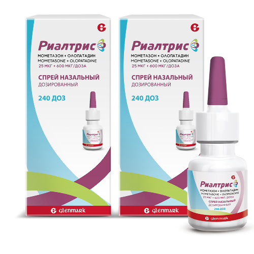 Резюме профиля безопасности В продолжительном клиническом исследовании (52 недели лечения) у пациентов с круглогодичным аллергическим ринитом наиболее частыми нежелательными реакциями при применении препарата Риалтрис (?2% и выше, чем в группе плацебо) были инфекции верхних дыхательных путей, носовое кровотечение, головная боль, дискомфорт в носу, вирусные заболевания верхних дыхательных путей, инфекция мочевыводящих путей, кашель и дисгевзия. Резюме в форме таблицы нежелательных реакций Частота определялась следующим образом: очень часто (?1/10), часто (?1/100, но <1/10), нечасто (?1/1000, но <1/100), редко (?1/10000, но <1/1 000), очень редко (<1/10000), частота неизвестна (на основании имеющихся данных оценить невозможно). Частота Часто Нечасто Редко Частота неизвестна Системно-органный класс Инфекционные и паразитарные заболевания Назофарингит Инфекции верхних дыхательных путей (в т.ч. вирусные) Инфекции мочевыводящих путей Гастроэнтерит Острый отит среднего уха Синусит Герпетическая инфекция ротовой полости Бактериальный вагиноз Нарушения со стороны иммунной системы Аллергия на укусы насекомых Реакции гиперчувствительности, включая анафилактические реакции, ангионевротический отек, бронхоспазм, одышку Нарушения со стороны эндокринной системы Гипотиреоз Нарушения психики Тревожность Депрессия Бессонница Нарушения со стороны нервной системы Дисгевзия (неприятный вкус во рту) Головная боль Сонливость Головокружение Бессонница Посттравматическая головная боль Заторможенность Мигрень Нарушения со стороны органа зрения Конъюнктивит Нечеткое зрение Сухость глаз Дискомфорт в глазах Катаракта* Открытоугольная глаукома* Повышенное внутриглазное давление* Нарушения со стороны органа слуха и лабиринтные нарушения Боль в ухе Нарушения со стороны сердца Тахикардия Нарушения со стороны сосудов Артериальная гипотензия Нарушения со стороны дыхательной системы, органов грудной клетки и средостения Носовое кровотечение Дискомфорт в носу Кашель Сухость в носу Отек слизистой носа Першение в горле Чихание Зуд в носу Раздражение дыхательных путей Боль в ротоглотке Перфорация носовой перегородки* Воспаление в области носа Изъязвление слизистой оболочки носа Дискомфорт в пазухах Нарушения со стороны желудочно-кишечного тракта Сухость во рту Боль в животе Дискомфорт в животе Боль в эпигастральной области Диарея Тошнота Запор Боль в языке Нарушения со стороны скелетно-мышечной и соединительной ткани Боль в конечностях Общие расстройства и нарушения в месте введения Слабость Эрозия слизистой оболочки носа Жажда Лабораторные и инструментальные данные Отклонения от нормы при осмотре носа, горла, уха Травмы, интоксикации и осложнения манипуляций Растяжение связок Травматическое кровотечение Глубокая резаная рана