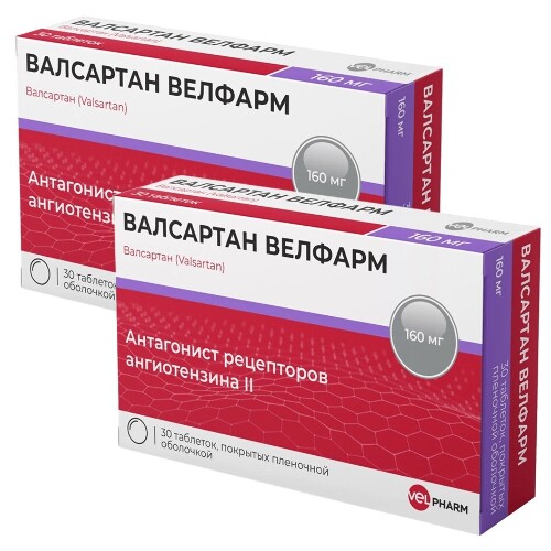 Набор из 2-х уп Валсартан Велфарм 160мг №30 табл со скидкой