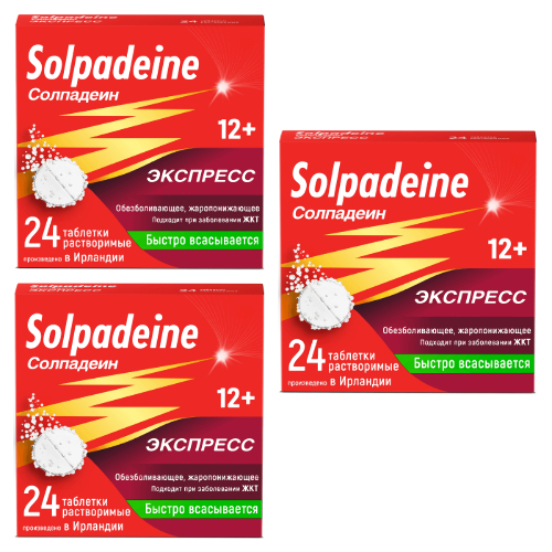 Набор из 3-х уп Солпадеин экспресс 65 мг+500 мг N24 стрип табл раствор со скидкой 22%