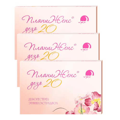 Календарная упаковка содержит 21 таблетку. Упаковка также содержит блок наклеек, состоящий из 7 самоклеющихся полосок с отмеченными на них названиями дней недели, необходимый для оформления календаря приема. Необходимо выбрать полоску, где первым указан тот день недели, в который начинается прием таблеток. Например, если начало приема таблеток приходится на среду, следует использовать полоску, которая начинается со «Ср.» (рис.1). Полоску наклеивают вдоль верхней части упаковки так, чтобы обозначение первого дня находилось над той таблеткой, на которую направлена стрелка с надписью «старт» (рис. 2). Теперь видно, в какой день недели следует принять каждую таблетку (рис.3). Прием таблеток всегда начинается с таблетки, помеченной «старт», а затем продолжается ежедневно по стрелкам. Таблетки принимают внутрь примерно в одно и то же время, запивая небольшим количеством воды по 1 таблетке в сутки непрерывно в течение 21 дня, Прием таблеток из следующего блистера начинается после 7- дневного перерыва, во время которого обычно развивается менструальноподобное кровотечение (кровотечение «отмены»). Как правило, оно начинается на 2-3 день после приема последней таблетки и может не закончиться до начала приема таблеток из нового блистера. Прием таблеток из новой упаковки следует начинать в один и тот же день недели, соответственно кровотечение «отмены» будет каждый месяц примерно в одно и то же время. Начало приема препарата ПланиЖенс® дезо 20 Если гормональные контрацептивы не применялись в течение последнего месяца Прием препарата должен начинаться в 1 день менструального цикла (т.е. в первый день менструального кровотечения). Можно начинать прием препарата на 2-5 день менструального цикла, но в этом случае рекомендуется дополнительно использовать барьерный метод контрацепции в течение первых 7 дней приема таблеток из первой упаковки. При переходе с других комбинированных гормональных контрацептивных препаратов (КОК, вагинального кольца или трансдермального пластыря) Предпочтительнее начинать прием препарата ПланиЖенс® дезо 20 на следующий день после приема последней таблетки ранее применяемого КОК, содержащей гормоны, но не позднее следующего дня после обычного 7 -дневного перерыва (если применялся КОК, содержащий 21 таблетку в упаковке) или после приема последней не содержащей гормонов таблетки (если применялся КОК, содержащий 28 таблеток в упаковке). Прием препарата ПланиЖенс® дезо 20 следует начинать в день удаления вагинального кольца или пластыря, но не позднее дня, когда должно было быть введено новое кольцо или наклеен новый пластырь. Ни в коем случае не следует превышать рекомендуемый безгормональный интервал предыдущего метода контрацепции. Переход с контрацептивов, содержащих только гестагены ("мини-пили", инъекционные формы, имплантат или внутриматочные системы (ВМС) с контролируемым высвобождением гестагена) При приеме "мини-пили" перейти на прием препарата ПланиЖенс® дезо 20 в любой день (без перерыва), при применении имплантата или ВМС - в день их удаления; при применении инъекционного контрацептива - в день, когда должна быть сделана следующая инъекция. Во всех случаях необходимо использовать дополнительно барьерный метод контрацепции в течение первых 7 дней приема препарата ПланиЖенс® дезо 20. После аборта, в том чис