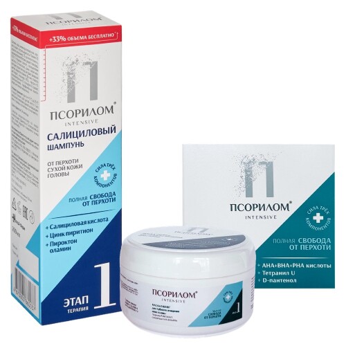 Набор Псорилом «Шампунь салициловый + маска-пилинг с кислотами AHA+BHA+PHA»