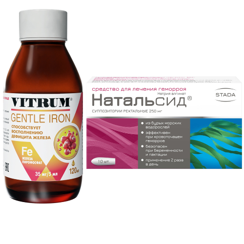 Набор Витрум железо 120 мл сироп и Натальсид 25 мг №10 суп. рек. по специальной цене