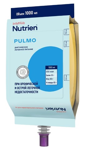 Nutrien® Pulmo (Нутриэн® Пульмо) 1 л -диетическое лечебное (энтеральное) питание для профилактики и устранения недостаточности питания, а также коррекции рациона питания.
