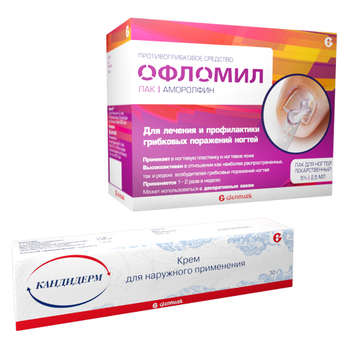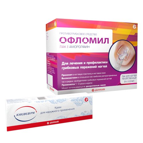 Набор из Офломил крем 0,25% 15мл + Офломил лак 5% 5мл флак лак д/ногтей