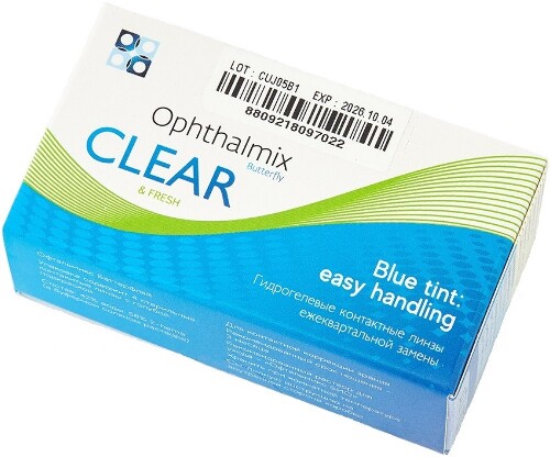 Офтальмикс баттерфляй CLEAR контактные линзы плановой замены/blue tint - это гидрогелевые мягкие контактные линзы с рекомендованным сроком замены каждые три месяца и предназначенные исключительно для дневного режима ношения. Такой режим предполагает ношение изделий не более 10 часов в сутки с обязательным ежедневным снимаем на ночь.