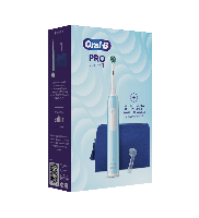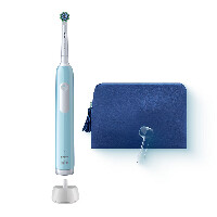 Oral-B - марка зубных щеток № 1, используемой большинством стоматологов в мире*. Электрическая зубная щетка Oral-B Pro 1 голубая, косметичка, колпачок для насадок в комплекте артикул 8006530101745
