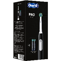 Электрическая зубная щетка Oral-B Pro 1 черная, дополнительные насадки Oral-B Pro CrossAction 2 шт артикул 8006530103978)