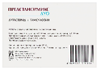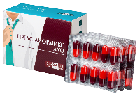 • Сообщите врачу о любых изменениях со стороны грудных желез, таких как уплотнения в железе или выделения из соска, это могут быть признаки рака груди. • Сообщите хирургу, если Вам планируется проведение оперативного вмешательства по поводу катаракты или глаукомы на фоне приема препарата, возможно развитие синдрома интраоперационной нестабильности радужной оболочки (синдром суженного зрачка), который может привести к осложнениям во время операции или в послеоперационном периоде. Ваш врач может отменить прием препарата за 1-2 недели до операции по поводу катаракты. • Дутастерид всасывается через кожу, поэтому женщины и дети должны избегать контакта с капсулами, у которых наблюдается утечка содержимого. В случае контакта с такими капсулами затронутую область следует немедленно промыть водой с мылом. • При половых контактах рекомендуется использовать презерватив. Дутастерид обнаруживается в сперме пациентов, принимающих препарат Предстанормикс дуо. Если Ваша партнерша беременна или может быть беременна, необходимо защитить ее от контакта с Вашей спермой, поскольку дутастерид может влиять на развитие плода мужского пола. • Продемонстрировано, что препарат Предстанормикс дуо снижает количество и подвижность сперматозоидов и объем эякулята. Это может привести к снижению Вашей способности к оплодотворению. • Не рекомендуется одновременный прием препарата Предстанормикс дуо со следующими препаратами: