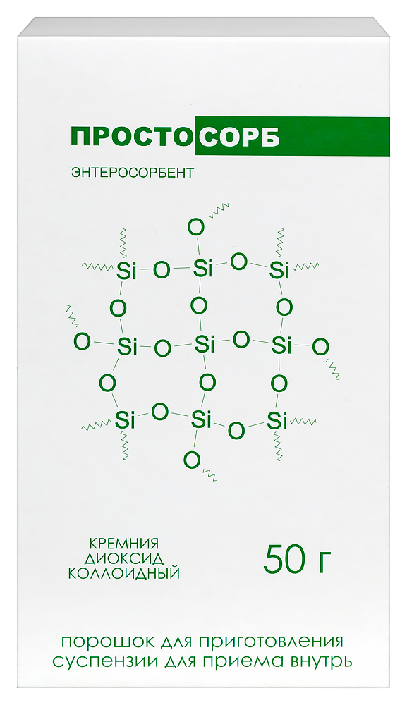 ПРОСТОСОРБ - неорганический, неселективный, полифункциональный энтеросорбент на основе высокодисперсного кремнезема с размерами частиц до 0,09 мм, с химической формулой SiO2. Удельная площадь поверхности препарата порядка 300 м2/г. Емкость адсорбции препарата при внутреннем употреблении не менее 220 мг/г.