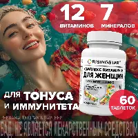 RISINGSTAR ПОЛИВИТАМИННЫЙ МИНЕРАЛЬНЫЙ КОМПЛЕКС В-МИН ДЛЯ ЖЕНЩИН Внешний вид: таблетки черничного цвета Таблетки без оболочки, что способствует улучшению усвояемости витаминов, может вызвать изменение цвета без потери качеств. Комплекс без консервантов, красителей и ГМО, производится с соблюдением требований стандартов ISO Уникальный комплекс с оптимально подобранным балансом витаминов и минералов (цинк, селен, йод, кальций, марганец, медь) разработан специально для женщин любого возраста для поддержки высокого уровня физической и умственной активности. Обогащен фолиевой кислотой и биотином, способствуя улучшению состояния кожи, волос и ногтей. Железо помогает насыщать кислородом красные кровяные тельца и необходимо во время менструального цикла. Вит. А регулирует обмен белков и аминокислот, нормализует выработку половых гормонов, функцию надпочечников, работу щитовидной железы. Витамин D необходим для здоровья костей, снижает риск развития остеопороза. Витамины группы В принимают участие в белковом и жировом обмене, необходимы для нормальной работы нервной и пищеварительной системы. Витамин С - превосходный антиоксидант, защищает клетки от негативных последствий окислительного стресса, укрепляет стенки капилляров и сосудов. Витамин Е регулирует температуру тела, улучшает состав крови и укрепляет сосуды. Результат: Компоненты комплекса способствуют: