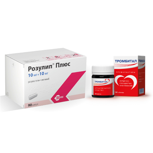 Противопоказания Циклоспорин: При одновременном применении розувастатина и циклоспорина значения AUC розувастатина были в среднем в 7 раз выше по сравнению со значениями у здоровых добровольцев. Такая комбинация не влияет на концентрации циклоспорина в плазме. Совместное применение препарата Розулип® Плюс и циклоспорина противопоказано. В исследовании, проводившемся у восьми пациентов, перенесших трансплантацию почки, с КК >50 мл/мин при приеме постоянной дозы циклоспорина, однократный прием 10 мг эзетимиба приводил к повышению среднего значения AUC эзетимиба в 3,4 раза (от 2,3 до 7,9 раз) по сравнению с AUC в здоровой популяции из другого исследования (контроль), получавшей только эзетимиб (n=17). В другом исследовании пациент после трансплантации почки, с тяжелой почечной недостаточностью, получал циклоспорин и много других лекарственных средств. У этого пациента отмечали повышение системного воздействия эзетимиба в 12 раз по сравнению с контрольными участниками, принимавшими только эзетимиб. В двухэтапном перекрестном исследовании, проводившемся у двенадцати здоровых участников, ежедневный прием 20 мг эзетимиба в течение 8 дней + однократный прием 100 мг циклоспорина в день приводил к повышению AUC циклоспорина, в среднем, на 15% (диапазон значений: от снижения на 10% до повышения на 51%) по сравнению с однократным приемом только 100 мг циклоспорина. Контролируемых исследований влияния совместного приема эзетимиба и циклоспорина на воздействие последнего у пациентов после трансплантации почки не проводили. Не рекомендуемые комбинации Ингибиторы протеазы: хотя точный механизм взаимодействия неизвестен, одновременное применение ингибиторов протеаз может приводить к значительному повышению системного воздействия розувастатина (см. таблицу). Например, в исследовании фармакокинетики совместный прием 10 мг розувастатина и комбинированного препарата двух ингибиторов протеаз (атазанавир 300 мг + ритонавир 100 мг) здоровыми добровольцами был ассоциирован с повышением AUC розувастатина приблизительно в три раза, а Cmax - примерно в семь раз. Одновременное применение розувастатина и некоторых комбинаций ингибиторов протеаз возможно только после тщательной оценки доз розувастатина, скорректированных на основании ожидаемого увеличения воздействия розувастатина. Данная комбинация доз не подходит в качестве терапии первой линии. Комбинированное лечение следует начинать только после подбора подходящей дозировки розувастатина или обоих компонентов. Ингибиторы белков-транспортеров: Розувастатин является субстратом некоторых белков-переносчиков, в том числе для транспортера захвата клетками печени OATP1B1 и для транспортера выведения BCRP. Одновременное применение Розулип® Плюс и лекарственных средств, ингибирующих данные белки-транспортеры, может приводить к повышению концентраций розувастатина в плазме и к повышению риска миопатии. Гемфиброзил и другие гиполипидемические средства: совместное применение розувастатина и гемфиброзила приводит к 2-кратному увеличению Cmax и AUC розувастатина (см. раздел «Особые указания»). Основываясь на данных по специфическому взаимодействию, не ожидается фармакокинетически значимого взаимодействия с фенофибратом, возможно фармакодинамическое взаимодействие. Гемфиброзил, фенофибрат, другие фибраты и 