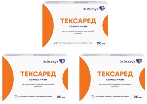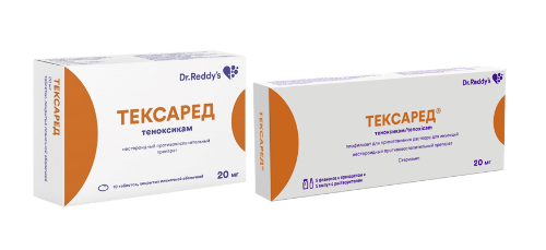 Гиперчувствительность к теноксикаму или любому из вспомогательных веществ, входящих в состав препарата. Прогрессирующая язвенная болезнь желудка и/или двенадцатиперстной кишки или желудочно-кишечное кровотечение. Воспалительные заболевания ЖКТ (болезнь Крона или язвенный колит в стадии обострения). Тяжелая почечная недостаточность, клиренс креатинина (КК) менее 30 мл/мин. Тяжелая печеночная недостаточность (цирроз печени и асцит). Тяжелая сердечная недостаточность (от III до IV степени) по классификации NYHA (Нью-Йоркская кардиологическая ассоциация). Послеоперационная терапия при проведении шунтирования коронарных артерий (или использовании аппарата искусственного кровообращения). Полное или неполное сочетание бронхиальной астмы, рецидивирующего полипоза носа и околоносовых пазух и непереносимости ацетилсалициловой кислоты или других НПВП (в том числе, в анамнезе). Установленный диагноз заболеваний свертывающей системы крови. Беременность и период грудного вскармливания. Детский возраст до 18 лет. Не рекомендуется применение препарата перед анестезией или операцией у пациентов пожилого возраста или пациентов с повышенным риском почечной недостаточности или кровотечения. Как и в случае с другими НПВП, это повышает риск развития острой почечной недостаточности и возможного нарушения гемостаза. Необходимо избегать одновременного применения салицилатов или других НПВП (поскольку это увеличивает риск возникновения осложнений со стороны ЖКТ). С осторожностью Язвенная болезнь желудка и двенадцатиперстной кишки вне обострения, язвенный колит и болезнь Крона вне обострения, заболевания печени в анамнезе, печеночная порфирия, значительное снижение объема циркулирующей крови (в том числе, после хирургического вмешательства), хроническая сердечная недостаточность (ХСН), артериальная гипертензия, сахарный диабет, ишемическая болезнь сердца (ИБС), цереброваскулярные заболевания, дислипидемия/гиперлипидемия, заболевания периферических артерий, курение, хроническая почечная недостаточность (КК 30-60 мл/мин), наличие инфекции H. pylori, длительное применение НПВП, алкоголизм, тяжелые соматические заболевания, одновременное применение глюкокортикостероидов (в том числе, преднизолона), антикоагулянтов (в том числе, варфарина), антиагрегантов (в том числе, ацетилсалициловой кислоты, клопидогрела), селективных ингибиторов обратного захвата серотонина (в том числе, циталопрама, флуоксетина, пароксетина, сертралина), возраст старше 65 лет (в том числе, пациенты, получающие диуретики, ослабленные пациенты и пациенты с низкой массой тела), бронхиальная астма, аутоиммунные заболевания (системная красная волчанка и смешанное заболевание соединительной ткани). Применение во время беременности и в период грудного вскармливания Применение препарата Тексаред® при беременности и в период грудного вскармливания противопоказано. Беременность Подавление синтеза простагландинов может отрицательно сказаться на течении беременности и/или эмбриональном и внутриутробном развитии. Данные эпидемиологических исследований указывают на повышенный риск выкидышей, а также пороков сердца и гастрошизиса у детей после применения ингибитора синтеза простагландинов на ранних сроках беременности. Предполагается, что риск увеличивается с увел