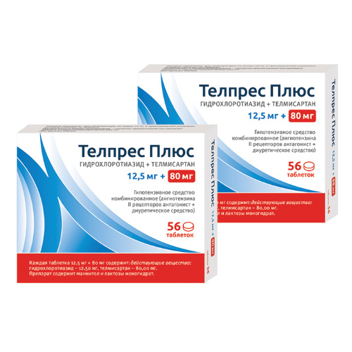 • Телпрес Плюс 12,5/80 мг может назначаться пациентам, у которых применение препаратов телмисартана в дозировке 80 мг или препарата Телпрес Плюс 12,5/40 мг не приводит к адекватному контролю АД.