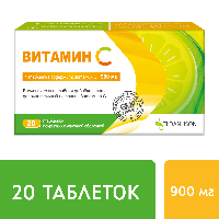 ВИТАМИН С - Биологически активная добавка (БАД) к пище Одна таблетка содержит: витамин С (аскорбиновая кислота) 900 мг. Величина суточного потребления биологически активных веществ: витамин С (1 таблетка или 900 мг - 1500%*)**, от рекомендуемого уровня потребления.