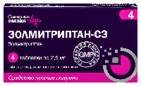 Золмитриптан-сз 2,5 мг 4 шт. таблетки, покрытые пленочной оболочкой