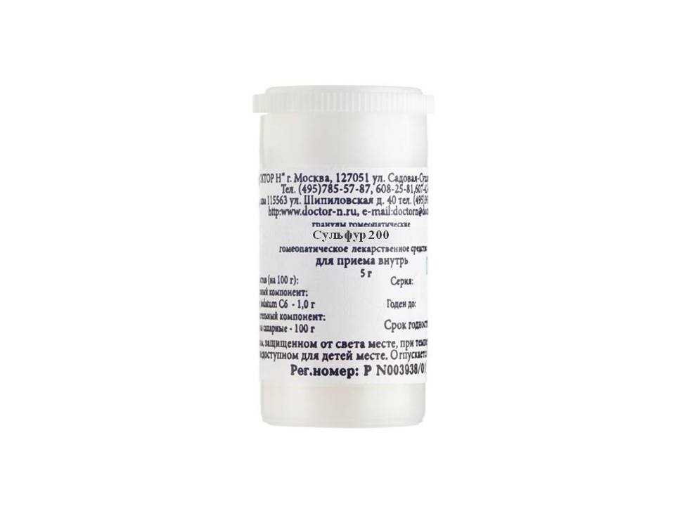 Состав (на 100 г): активный компонент: Сульфур (Sulfur) C3 - 1,0 г вспомогательный компонент: гранулы сахарные - 100 г