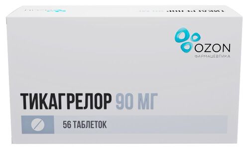 Тикагрелор 90 мг 56 шт. таблетки, покрытые пленочной оболочкойОЗОН ООО