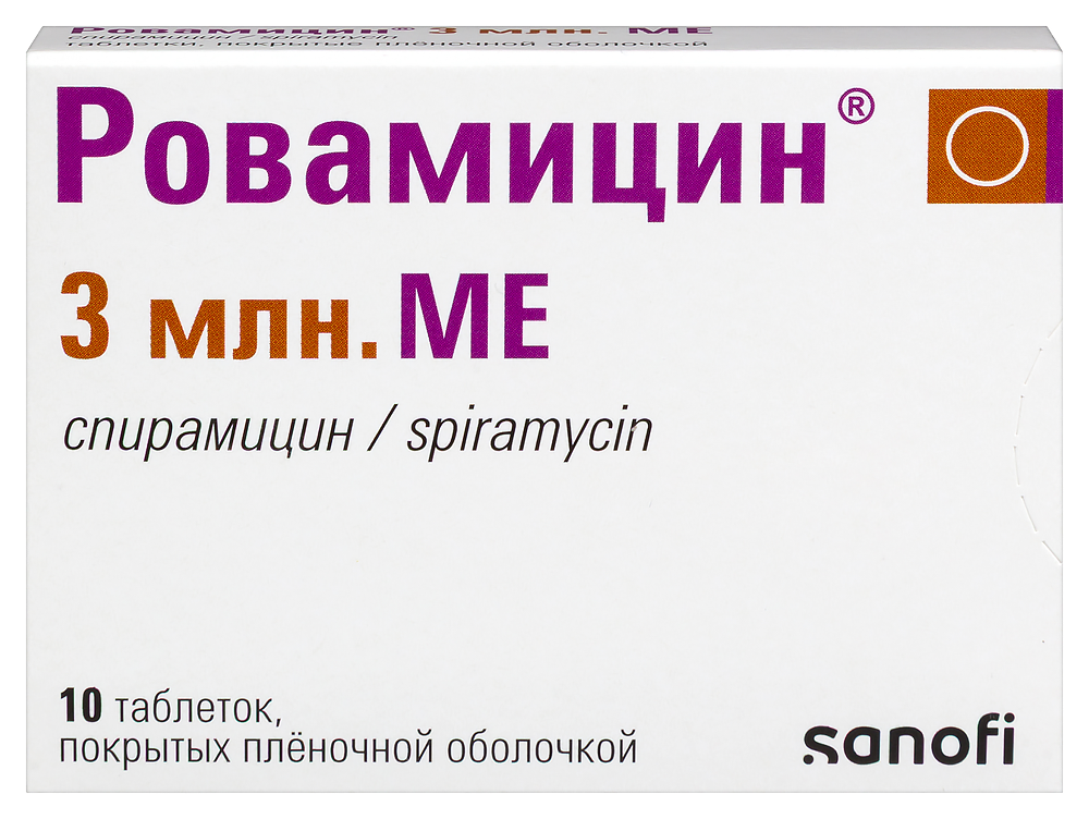 - Инфекционные заболевания, вызванные чувствительными к этому препарату микроорганизмами: - острый и хронический фарингит, вызванный бета-гемолитическим стрептококком А (в качестве альтернативы лечению бета-лактамными антибиотиками, особенно в случае противопоказаний к их применению); - острый синусит (учитывая чувствительность наиболее часто вызывающих эту патологию микроорганизмов, применение препарата Ровамицин® показано в случае противопоказаний к применению бета-лактамных антибиотиков); - острый и хронический тонзиллиты, вызванные чувствительными к спирамицину микроорганизмами; - острый бронхит, вызванный бактериальной инфекцией, развившейся после острого вирусного бронхита; - обострение хронического бронхита; - внебольничная пневмония у пациентов без факторов риска неблагоприятного исхода, тяжелых клинических симптомов и клинических признаков пневмококковой этиологии пневмонии; - пневмония, вызванная атипичными возбудителями (такими как Chlamydia pneumoniae и trachomatis, Mycoplasma pneumoniae, Legionella spp) или подозрение на нее (вне зависимости от тяжести и наличия или отсутствия факторов риска неблагоприятного исхода); - инфекции кожи и подкожной клетчатки, включая импетиго, импетигинизацию, эктиму, инфекционный дермо-гиподермит (особенно рожу), вторичные инфицированные дерматозы, эритразму; - инфекции полости рта (стоматиты, глосситы и т. п.); - негонококковые инфекции половых органов; - токсоплазмоз, в том числе у беременных женщин; - инфекции костно-мышечной системы и соединительной ткани, включая периодонт. - Профилактика рецидивов ревматизма у больных с аллергией на бета-лактамые антибиотики; - Эрадикация Neisseria meningitidis из носоглотки (при противопоказаниях к приему рифампицина) для профилактики (но не лечения) менингококкового менингита у больных после проведения лечения и перед выходом из карантина или у больных, бывших в течение 10 дней до госпитализации в контакте с лицами, выделявшими Neisseria meningitidis со слюной в окружающую среду.