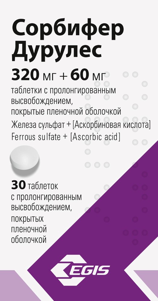 «Дурулес» - это технология, которая обеспечивает постепенное высвобождение активного вещества (ионов железа), равномерное поступление лекарственного препарата. Прием по 100 мг два раза в день обеспечивает на 30% большее всасывание железа из препарата Сорбифер Дурулес по сравнению с другими препаратами железа.