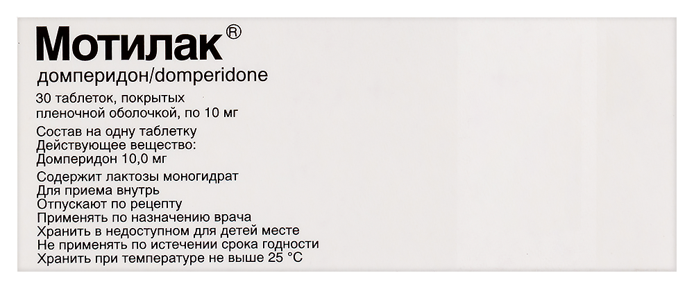 — пролактинома; — детский возраст до 5 лет; — повышенная чувствительность к домперидону. Не следует применять Мотилак, когда стимуляция двигательной функции желудка недопустима, т.е. при желудочно-кишечном кровотечении, механической непроходимости или перфорации.