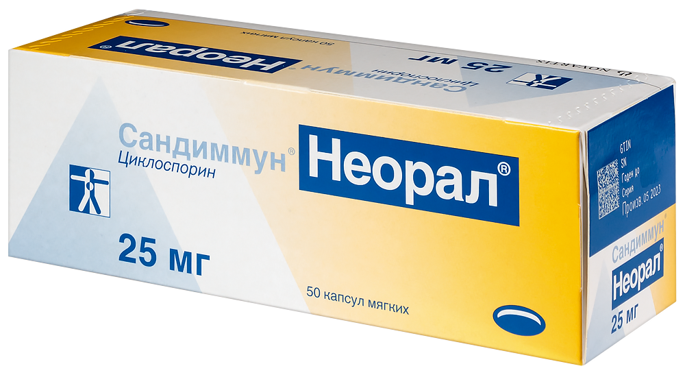 Раствор, содержащийся в мягких желатиновых капсулах, представляет собой концентрированную микроэмульсию, разбавляемую с помощью жидкости в желудке при применении препарата. За счет этого уменьшается вариабельность фармакокинетических параметров при применении во всех диапазонах доз и обеспечивается линейная зависимость между дозой и эффектом циклоспорина (AUC - площадь под кривой "концентрация-время") с более равномерной абсорбцией и меньшей зависимостью от одновременного приема пищи и секреции желчи. Одновременный прием пищи и циркадианные биоритмы пациента оказывают незначительное влияние на фармакокинетические параметры препарата. Этими свойствами в совокупности обусловлены низкая вариабельность фармакокинетики циклоспорина у одного и того же пациента (10-22% у пациентов с трансплантатом почки), более выраженная корреляция между концентрацией и биодоступностью (AUC) и отсутствие необходимости учитывать время приема пищи. Кроме того, наблюдается более равномерная биодоступность препарата, как в течение дня, так и в течение более длительного периода времени при долгосрочном применении в поддерживающей дозе. Данные различных исследований показали, что мониторинг AUC циклоспорина в первые 4 часа после приема (AUC0-4), позволяет с большей точностью определить биодоступность препарата по сравнению с определением его остаточной концентрации в плазме крови непосредственно перед приемом последующей дозы (С0 мониторинг). В ряде других исследований было продемонстрировано, что у пациентов после трансплантации результаты однократного мониторинга через 2 часа после приема препарата (С2 мониторинг) коррелируют с AUC0-4. Всасывание После приема препарата у пациентов с трансплантатом солидных органов отмечается быстрое всасывание циклоспорина, время достижения максимальной концентрации (Тмах) составляет 1-2 ч. Абсолютная биодоступность составляет 30-60%. У пациентов с трансплантатом почки, находящихся в стабильном состоянии, получающих поддерживающую терапию циклоспорином, средняя Смах и AUC в равновесном состоянии (при применении препарата в средней дозе 100 мг/сут) составляют 793 нг/мл и 2741 ч нг/мл соответственно. Распределение Циклоспорин распределяется большей частью вне кровеносного русла (кажущийся объем распределения составляет 3,5 л/кг). Распределение в крови зависит от концентрации циклоспорина: в среднем 33-47% циклоспорина находится в плазме, 4-9% - в лимфоцитах, 5-12% - в гранулоцитах и 41-58% - в эритроцитах. При высокой концентрации препарата увеличивается концентрация циклоспорина в лейкоцитах и эритроцитах. В крови связывание с белками плазмы (преимущественно липопротеинами) составляет примерно 90%. Метаболизм Циклоспорин в значительной степени подвергается биотрансформации системой цитохрома Р-450 (изофермент CYP450 ЗА4), с образованием примерно 15 метаболитов. Основными путями метаболизма являются моногидроксилирование, дигидроксилирование и N-деметилирование. Все выявленные метаболиты содержат пептидную структуру неизмененного препарата. Некоторые из метаболитов обладают незначительным иммуносупрессивным действием (до 10% от такового для циклоспорина). Выведение Величина конечного периода полувыведения циклоспорина весьма вариабельна, что зависит от применяемого метода определения и обследуемого контингента пацие