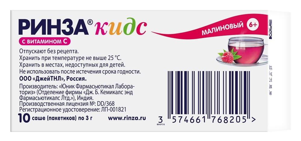 • Производителем Ринза является – Юник Фармасьютикал Лабораториз(Отделение фирмы Дж.
