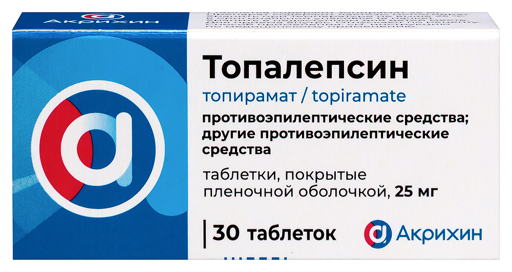 топирамат в пересчете на 100% вещество - 25 мг, 50 мг, 100 мг или 200 мг;