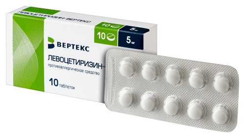 действующее вещество: левоцетиризина дигидрохлорид - 5,0 мг;